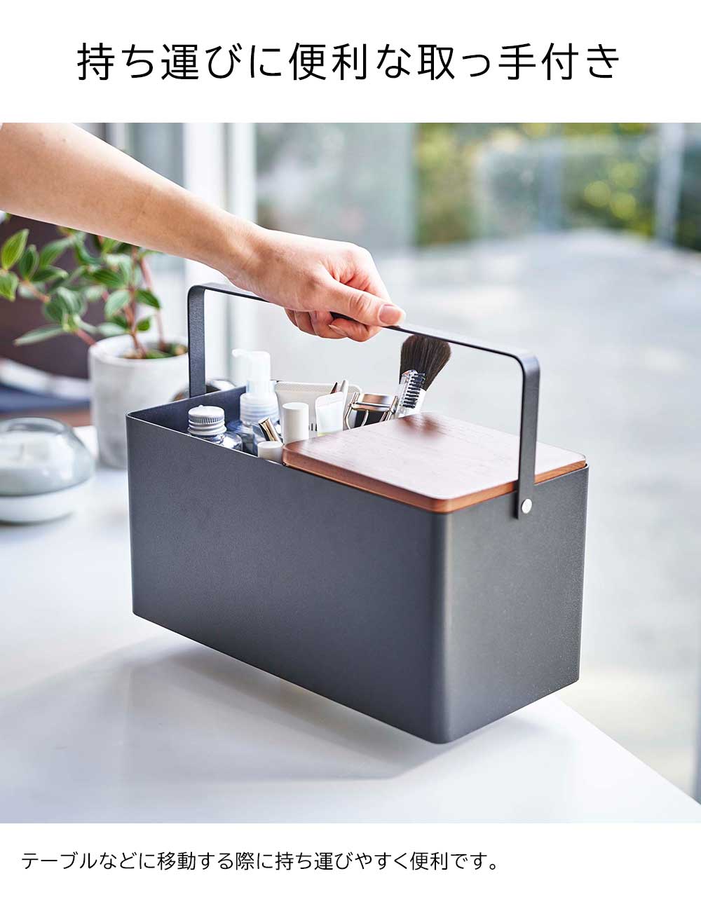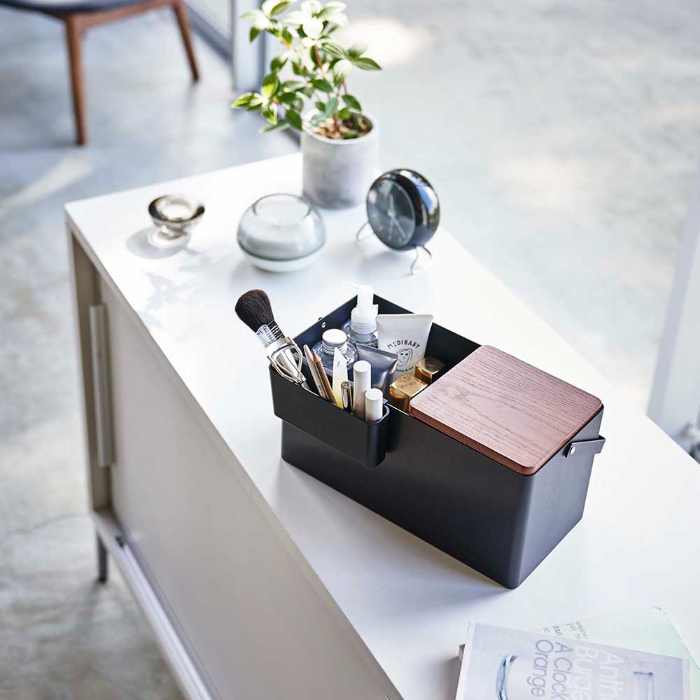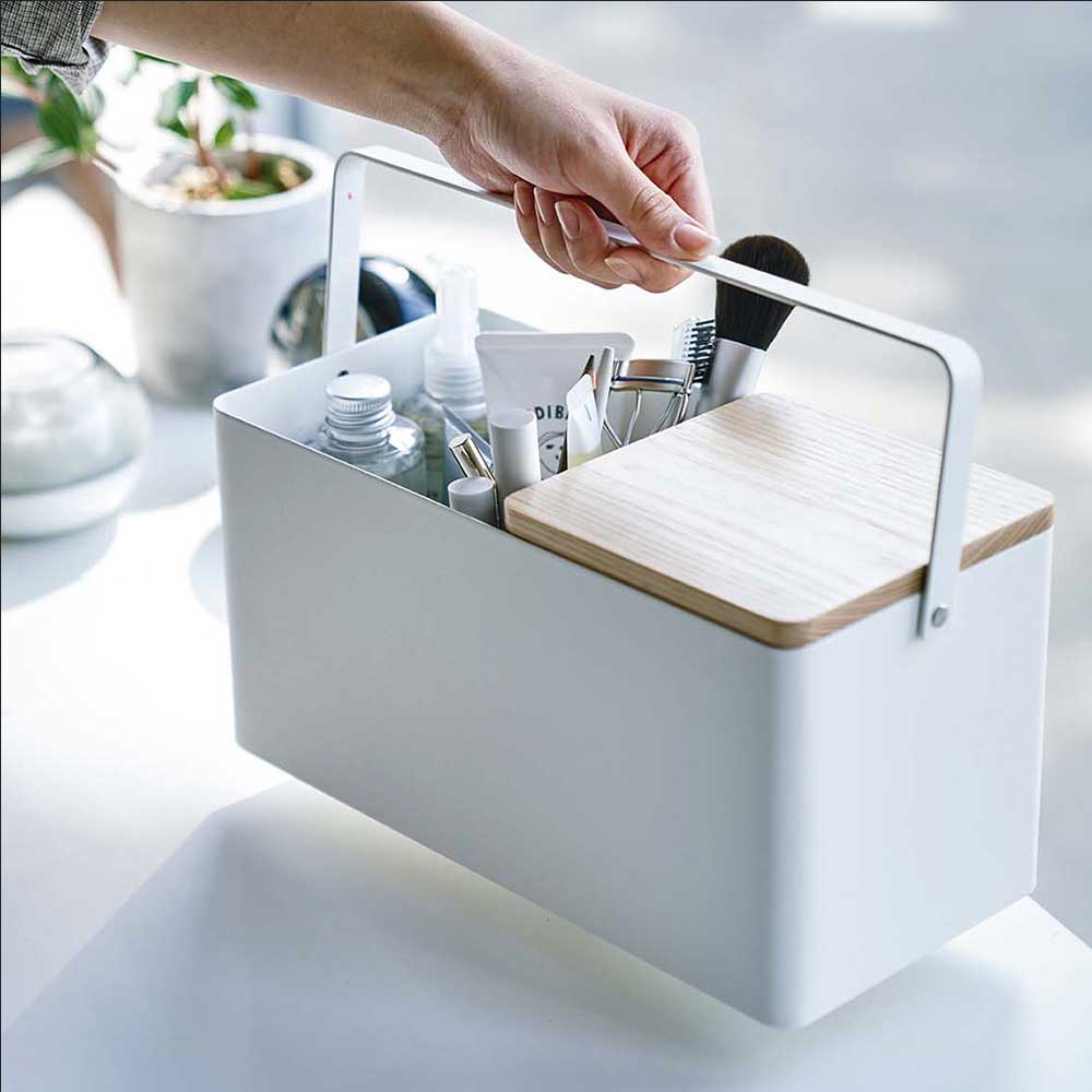 TOP > ブランド一覧 > 山崎実業 > 洗面室・トイレ > コスメ・ネイル収納 > 【ポイント5倍】メイクボックス タワー 山崎実業 tower ホワイト ブラック 5453 5454 鏡付き 木製 持ち運び コスメ収納 化粧品 収納