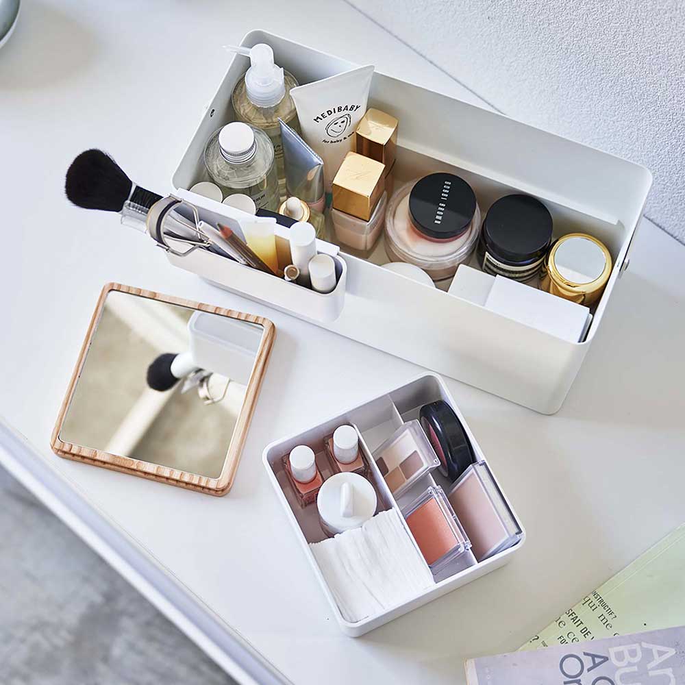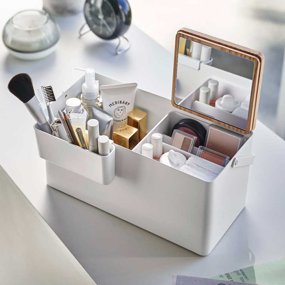 TOP > ブランド一覧 > 山崎実業 > tower > 【ポイント5倍】メイクボックス タワー 山崎実業 tower ホワイト ブラック 5453 5454 鏡付き 木製 持ち運び コスメ収納 化粧品 収納