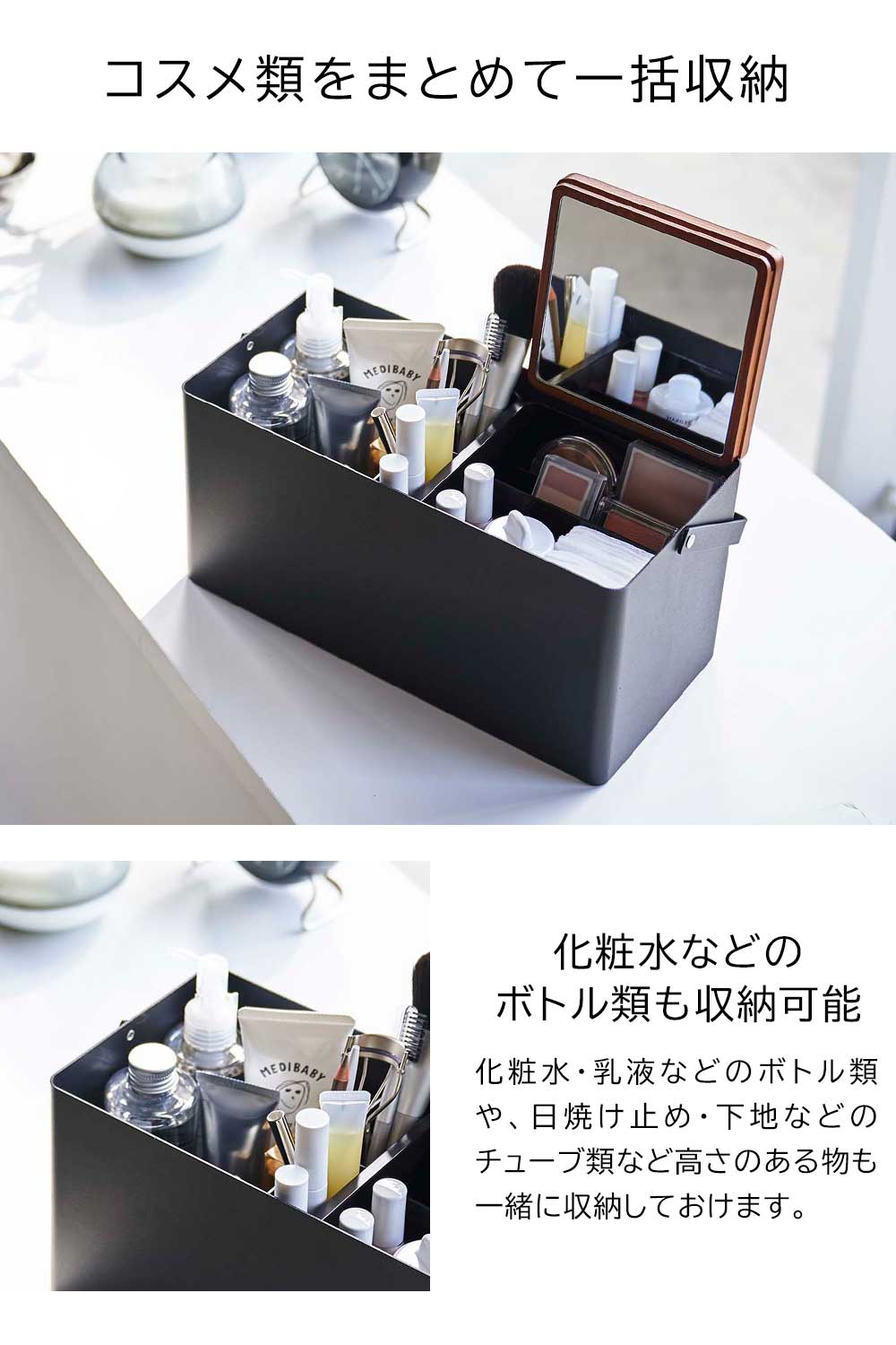 TOP > 価格から選ぶ > 6000~6999円 > 【ポイント5倍】メイクボックス タワー 山崎実業 tower ホワイト ブラック 5453 5454 鏡付き 木製 持ち運び コスメ収納 化粧品 収納