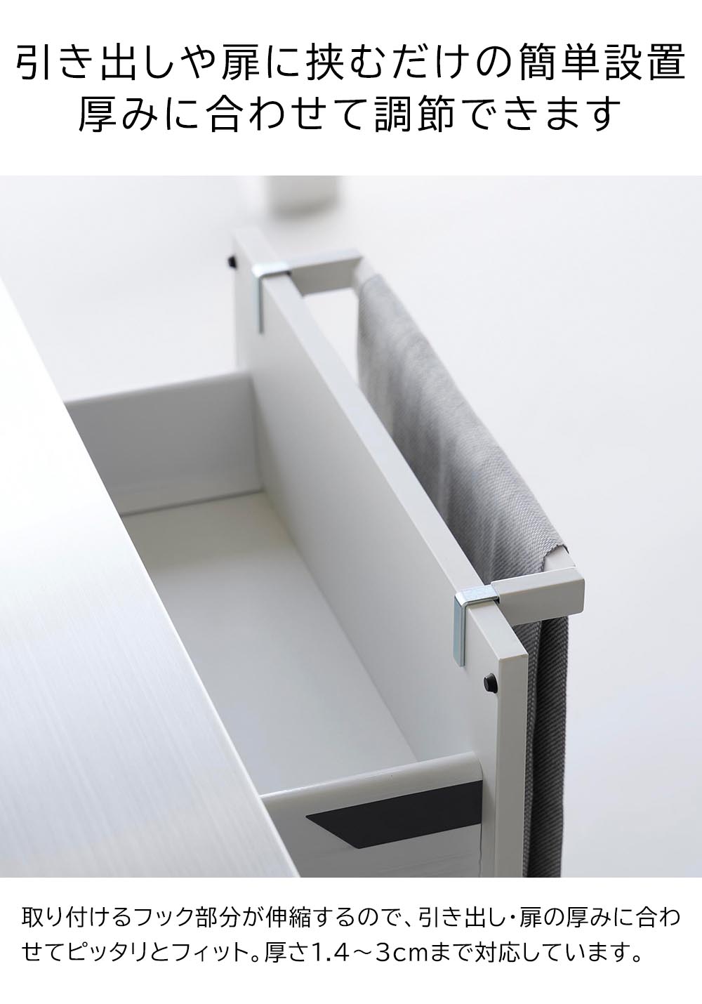 タオルの滑り落ちを防止! 引き出しや扉に挟むだけの簡単設置!シンクキッチンタオルの滑り落ちを防止してくれるタオルハンガーです。ハンガーのバー部分がシリコーン素材でできており、上部が角ばった形状なので、タオルで手を拭いた時もしっかりとホールド!滑り落ちにくくなっています。厚さ約1.4~3cmまでの引き出し・扉に対応しており、設置箇所の厚みにフックを合わせてネジで固定するだけで設置完了。タオルを2枚並べて収納できるワイドサイズなので、使い分けに便利。奥行き4.5cmと、キッチンでの作業の邪魔にならない薄型なのも嬉しいポイントです。 ![]() ![]() ![]() ![]() ![]() ![]() ![]() ![]() ![]() ![]() ![]() ![]() ![]() |