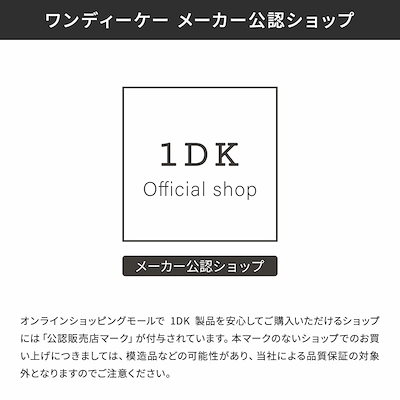 オンラインショッピングモールで 1DK 製品を安心してご購入いただけるショップには「公認販売店マーク」が付与されています。 本マークのないショップでのお買い上げにつきましては、模造品などの可能性があり、当社による品質保証の対象外となりますのでご注意ください。