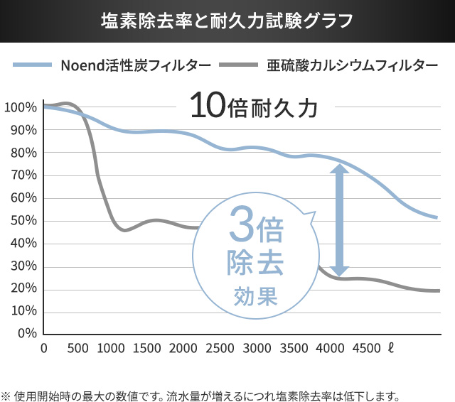 天然素材の三層活性炭フィルターで塩素除去。