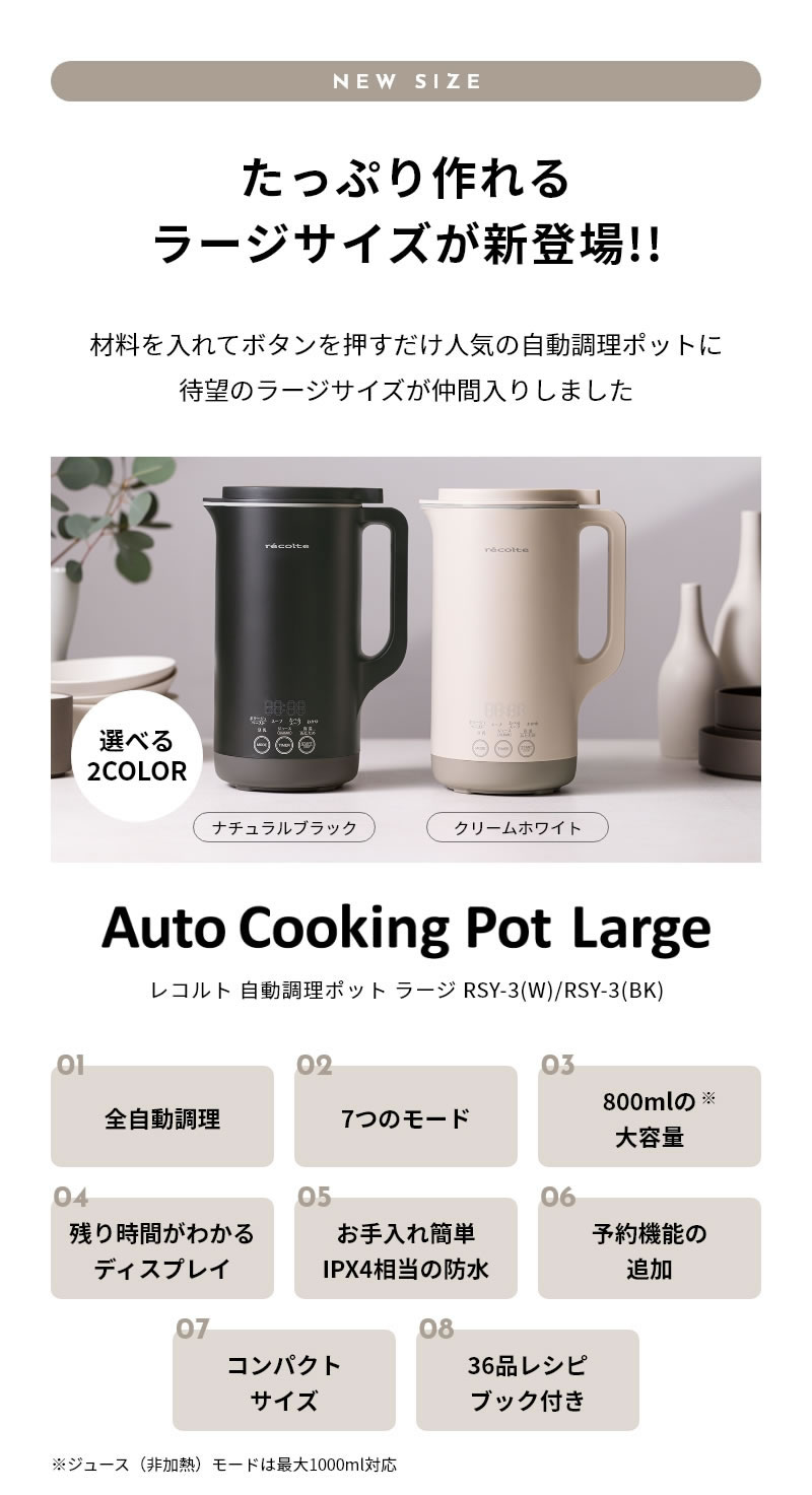 TOP > 価格から選ぶ > 10000円~ > 【3月中旬発送予定】recolte レコルト 自動調理ポット ラージ クリームホワイト/ナチュラルブラック RSY-3
