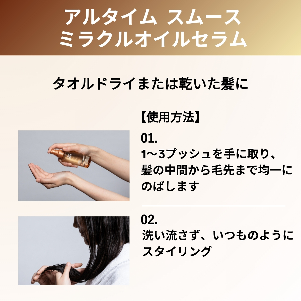 *アルタイム スムース M ミルクスプレー・バームトリートメント・オイルセラムのいずれかを使用時