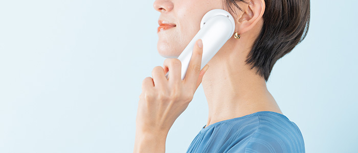 表情筋の深層まで効率よくアプローチする、スティック型の美容ツール。独自の「デュアルウェーブEMS」と、肌をじんわり温める温感機能で、筋肉の緊張をほぐしながら、自分では鍛えにくい顔の土台を心地よく刺激し、上向きの印象へと導きます。