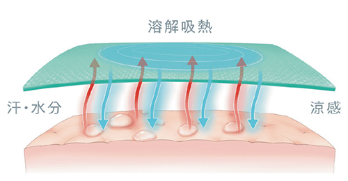 生地に加工したキシリトールが汗や水分と反応して、冷涼感をもたらします。暑い夏でも、ひんやりした着心地です。
