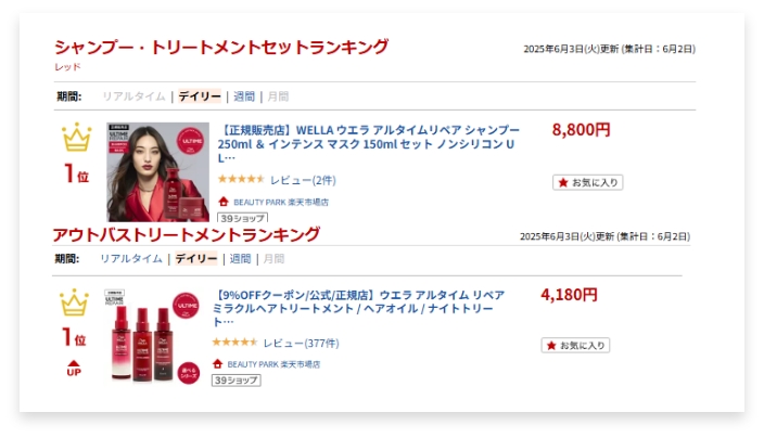 シャンプー・トリートメントセット部門 / アウトバストリートメント部門
